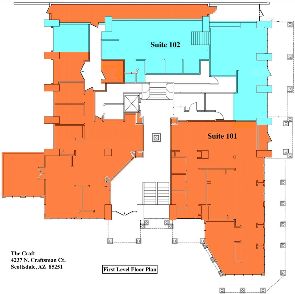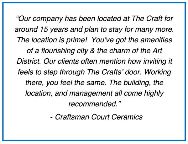 The first floor of The Craft is completely leased. First floor tenants consist of Craftsman Court Ceramics (Suite 101) and WoodCrest Cabinetry (Suite 102).