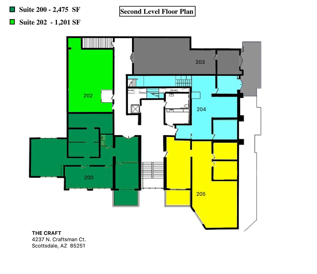 Phoenix Lending Group(Suite 201), Woodcrest Design Studio (Suite 203), Craftsman Court Ceramics extended showroom and offices (Suite 204), and Baker Development (Suite 205).