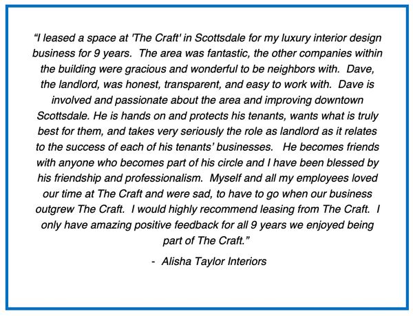 The Craft is locally owned and managed. Management takes true pride in offering an exceptional location for your business and providing a top-notch experience while leasing space at our building. Our goals are to ALWAYS provide fantastic customer service, treat our tenants like friends, and help anywhere and everywhere we can to promote our tenant's businesses. Your success is our success.